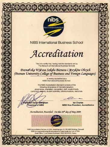 Poznańska Wyższa Szkoła Biznesu i Języków Obcych otrzymała akredytację NIBS - Network of International Business Schools.