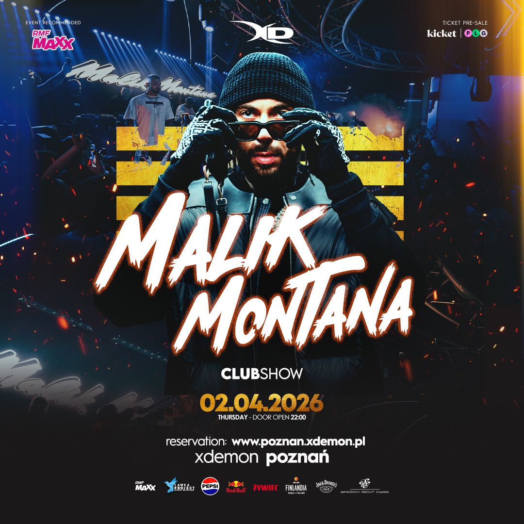 Malik Montana, artysta znany z utworów takich jak: "Jetlag", "Baciata", "Do Tańca" czy "Jagodzianki" - pojawi się na żywo już 2.04 - w czwartek - w X-Demonie Poznań!