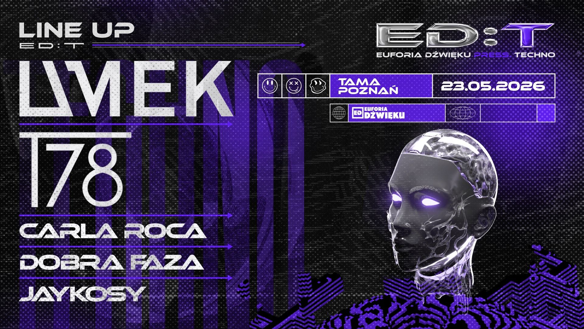 Już 23 maja w Klubie Tama w Poznaniu ED:T czyli techno strona Euforii Dźwięku, a w line upie: